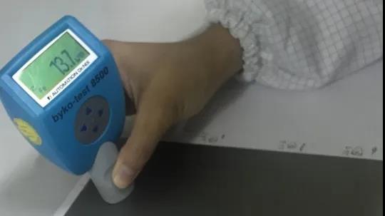 涂魔师可以对液体涂料的湿膜或干膜进行非接触测试,在产品进入烤炉即可测出干膜厚度,通过调节喷涂设备避免生产大量有缺陷的产品,无需等测量烘干就知道喷涂参数是否调节到位,从而高效监控工艺、管控产品质量和控制生产成本。